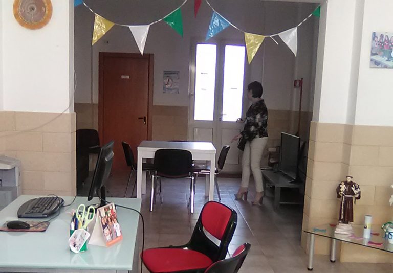 Accesso allo stabile con rampa media e scalino inferiore a 2cm (da sistemare)