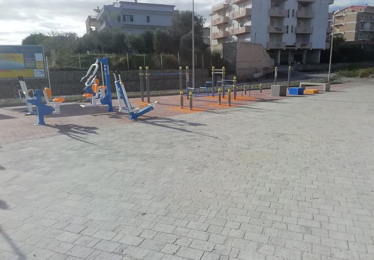 Palestra pubblica esterna con attrezzi, alcuni di essi utilizzabili anche da persone in carrozzina.
